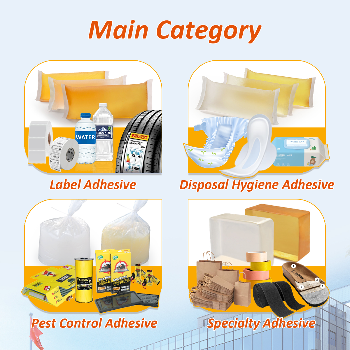 Principais produtos:Adesivo de fusão a quente, adesivo de higiene para eliminação, adesivo para etiquetas, adesivo para controle de pragas, adesivo especial